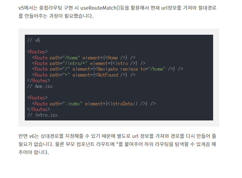 React-dom-router 의 대한 정보를 찾다가 v5랑 v6랑 섞인 정보가 많아 혼란스러웠다.