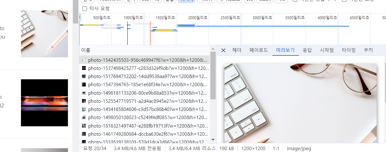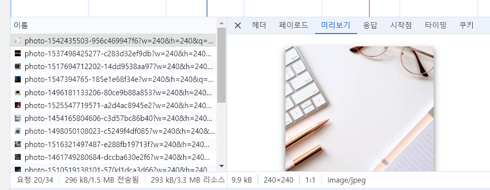 상단 이미지를 보면 작은 상이즈 즉 120*120 사이즈를 사용하고 있지만 불러오는건 1200*1200 사이즈를 불러오고 있다.