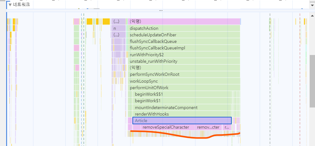 removeSpecialCharacter함수가 굉장히 오래 걸리는 것을 알 수있다.