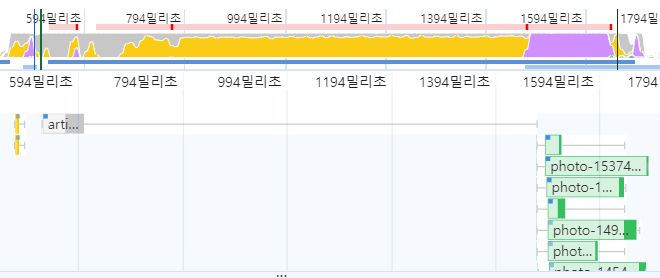 퍼포먼스 탭을 분석하면 article이라는 api요청 및 콜백이굉장히 오래걸리는걸 알 수 있다.