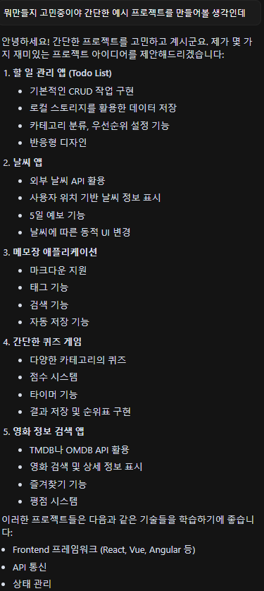 - 대충 뭐 만들지 고민중이라고 물어봤습니다.