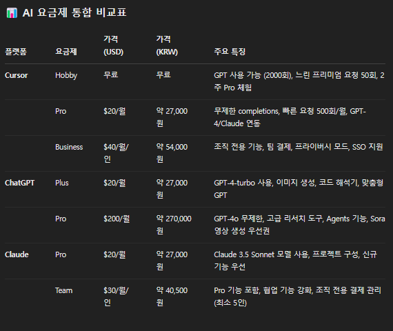 2. Cursor랑 다른 AI 랑 가격비교