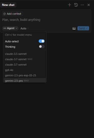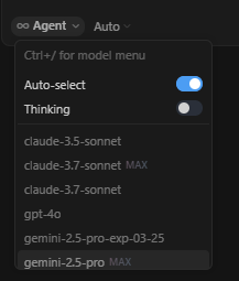 - auto-select : 커서가 성능과 퍼포먼스에 맞게 알아서 모델을 골라줍니다. 편리하네요