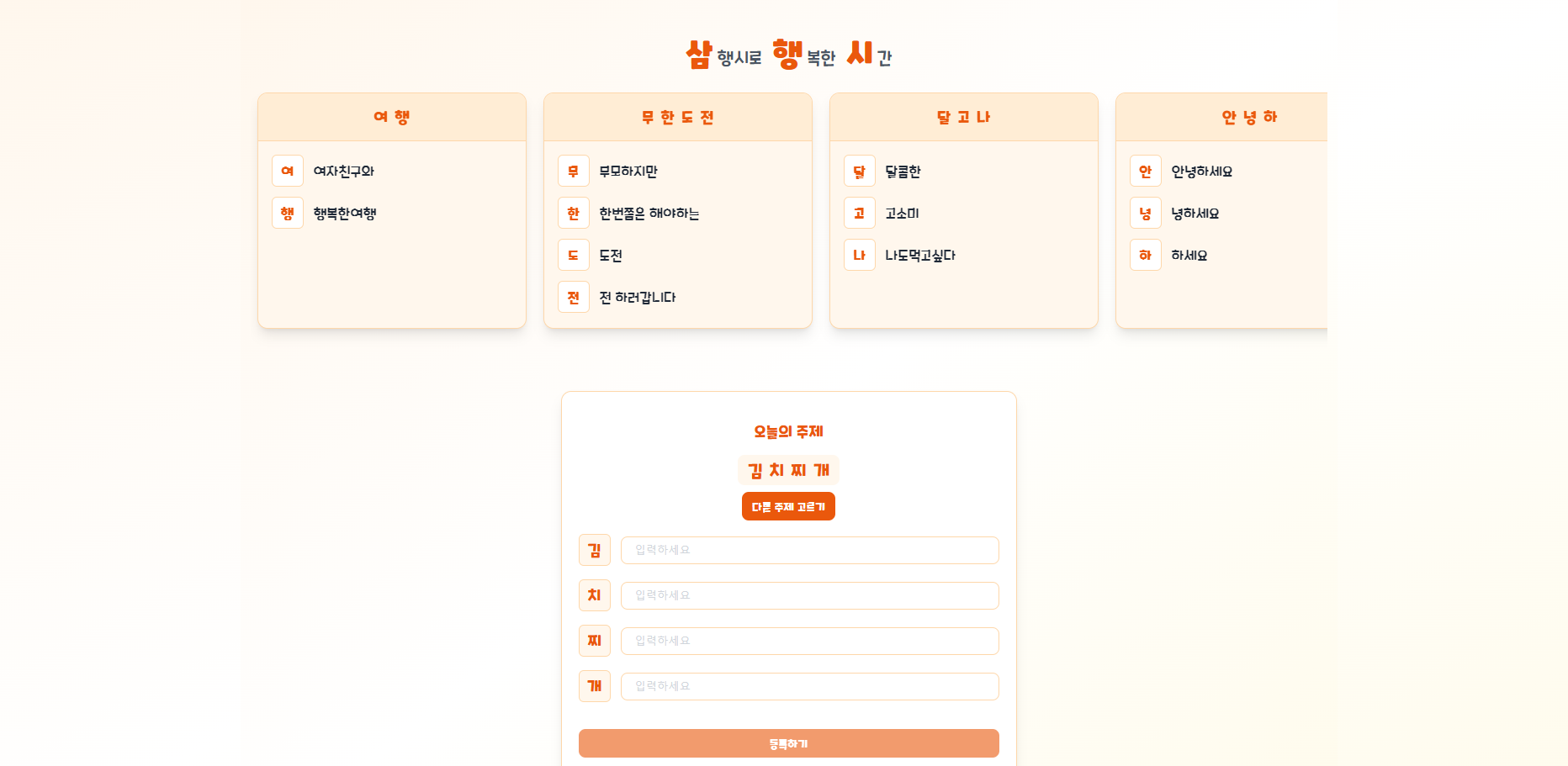 한줄요약 : 세시간 반동안 Cursor로 이거만듬 삼행시로 행복한 시간