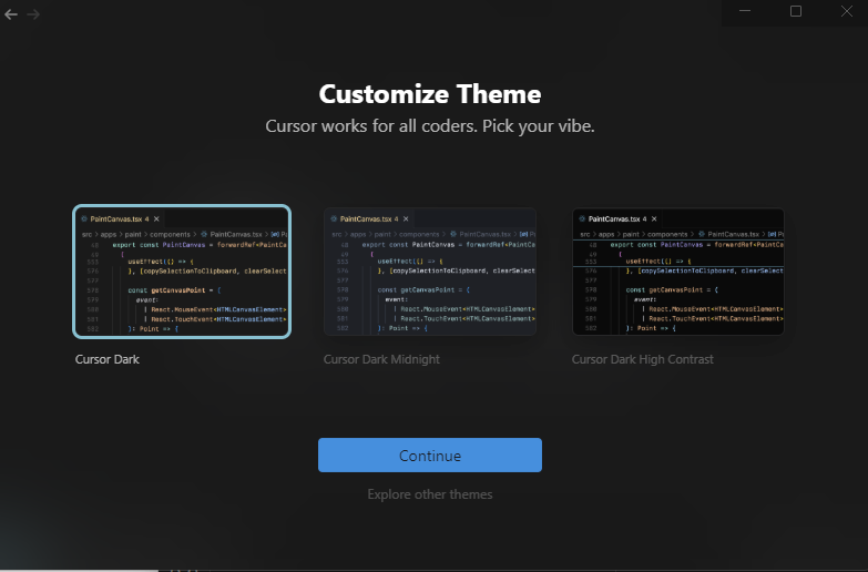 - 우선 순정부터 맛보겠습니다. Cursor Dark 선택!
